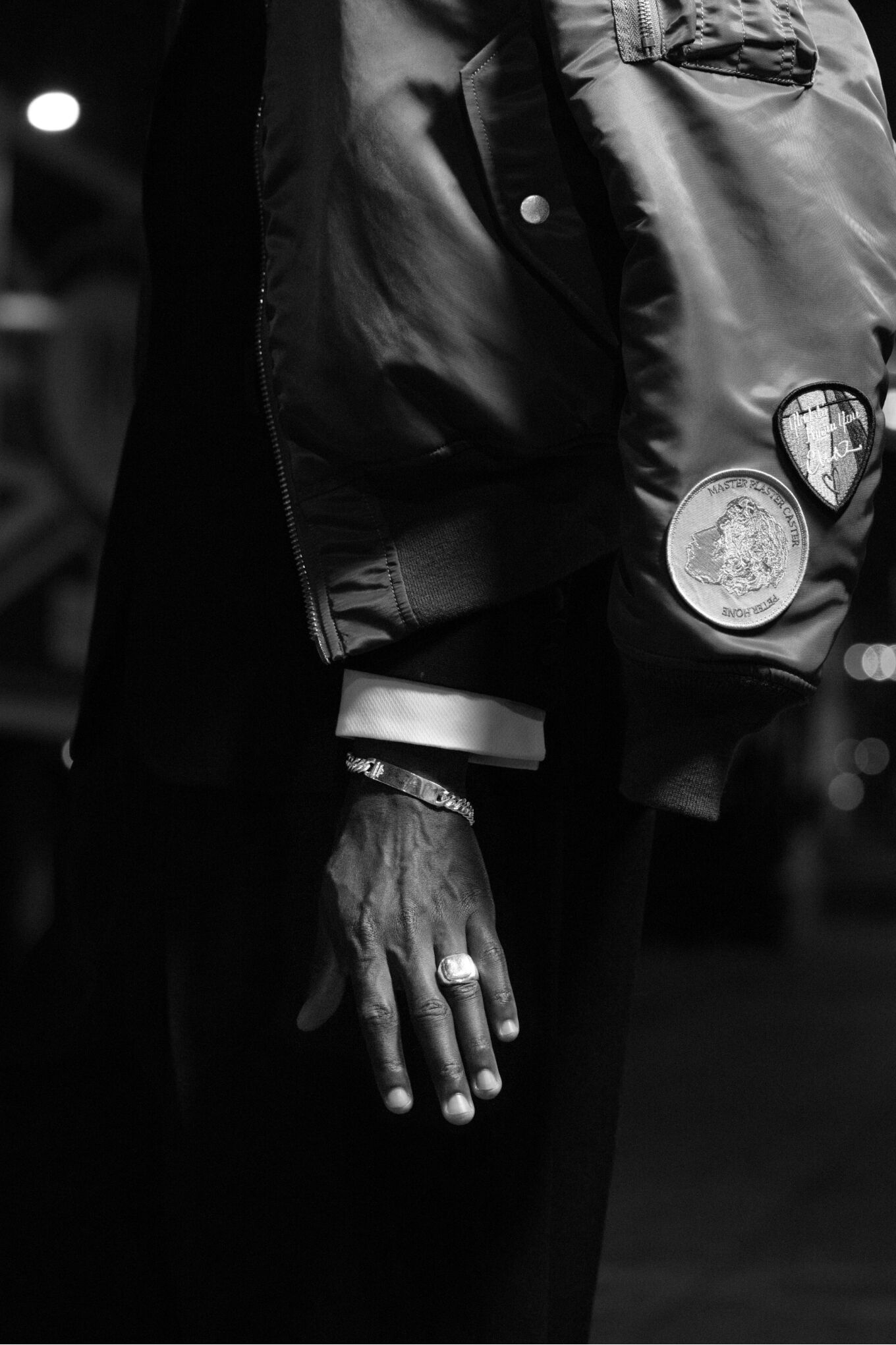 At the center stands a reimagined MA-1. Based on Alpha’s original design, it is reframed through BUNNEY’s hand-made sterling silver hardware and considered material choices. Vintage Green flight nylon meets a BUNNEY grey lining and curated patches as markers of personal history of many collaborators.