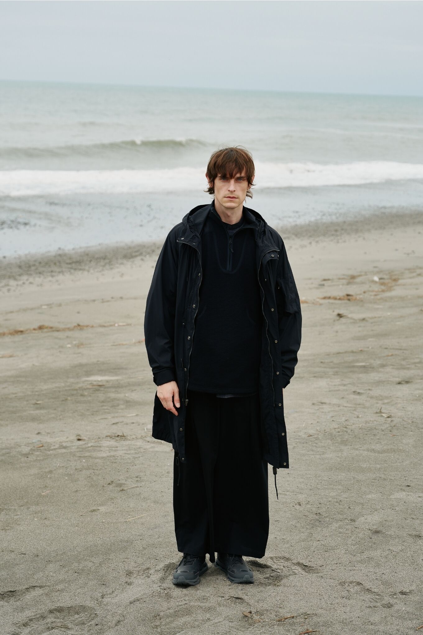 In collaboration with White Mountaineering, Alpha Industries reinterprets the M-59 parka from its military archive. The fishtail construction is removed, shifting the silhouette into a relaxed A-line with added sleeve volume. Asymmetrical zip pockets add a technical edge. Lightweight 20D × 20D nylon stretch taffeta delivers a dry hand feel, subtle texture, and clean structure. Mesh at the front keeps it light and breathable.