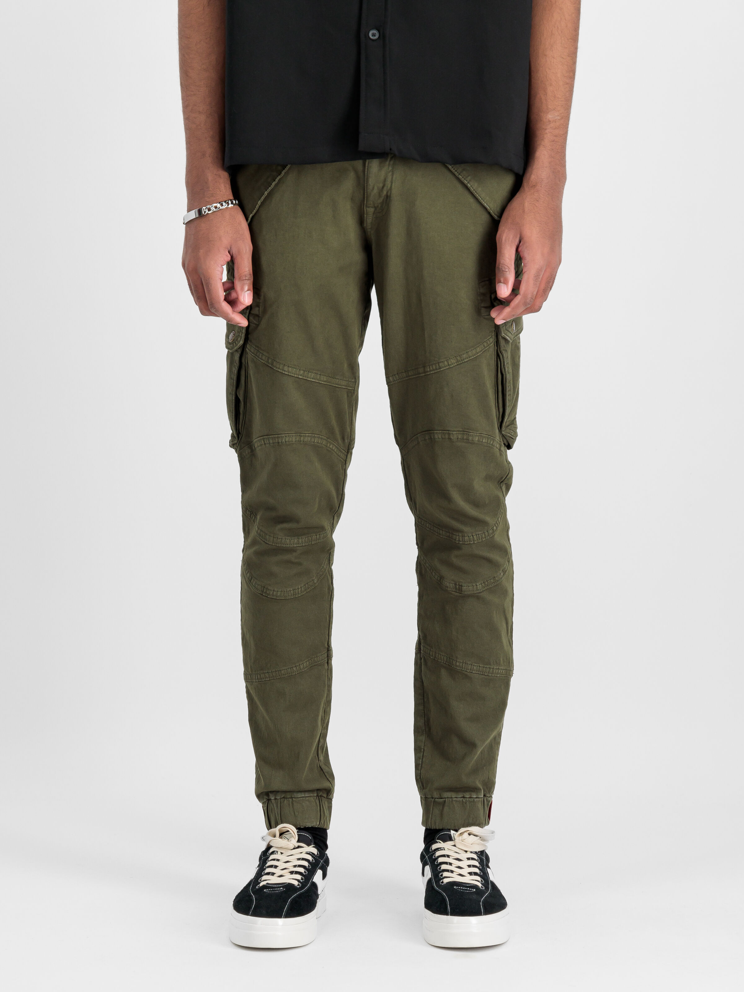 At the back of these stylish cargos are two rear pockets with press studs – perfect for secure storage of your wallet or phone while you're on-the-go. And don't miss out on noticing how we've placed our leather label just above the right back pocket - an unmistakable mark of quality craftsmanship from Alpha Industries.