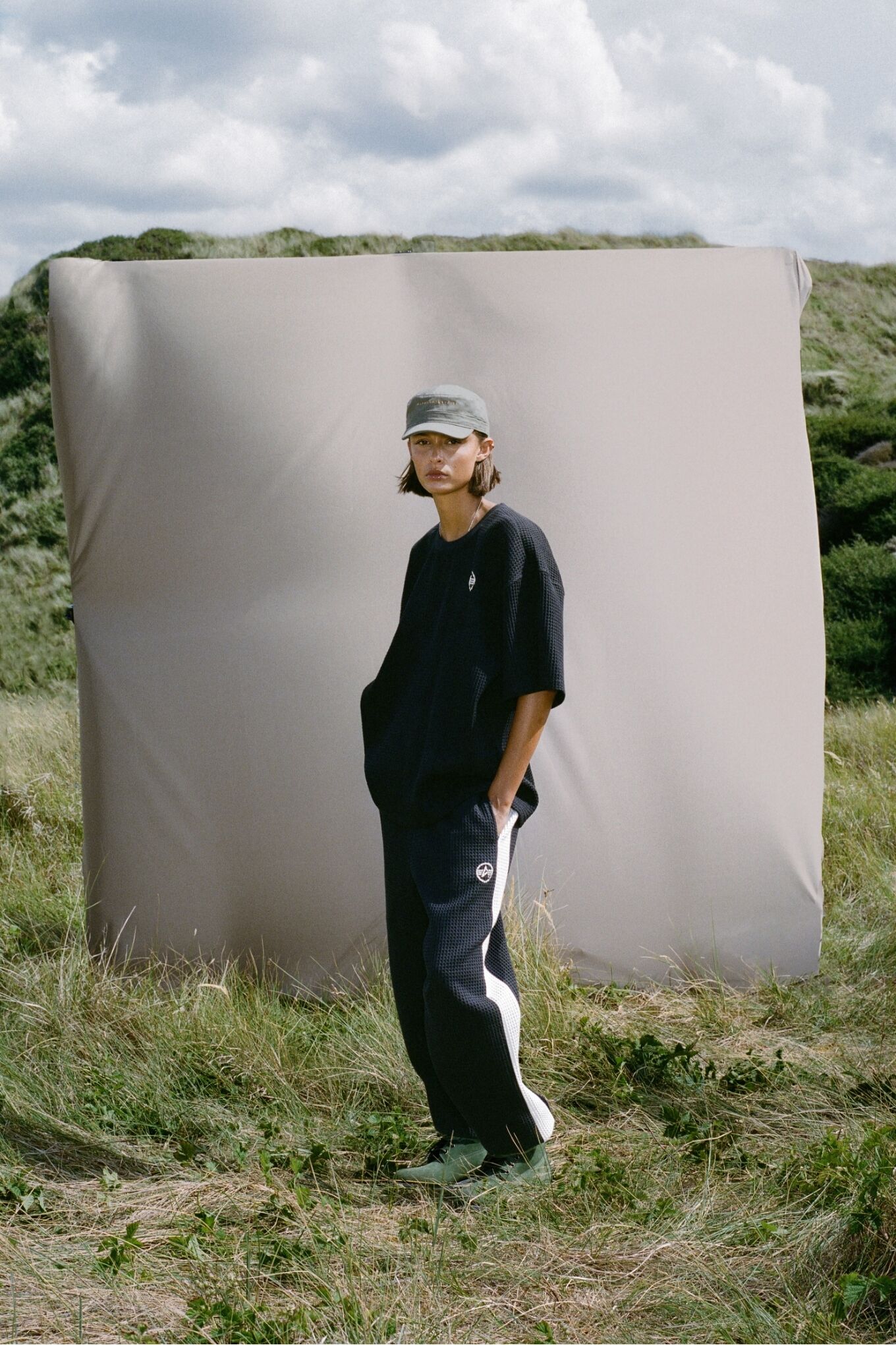 Shot against a raw coastal landscape, the campaign’s backdrop feels as deliberate as the garments themselves – stark, exposed, and stripped of distractions. Whether crossing dunes or crouched in the tall grass, the wearers are never static.
