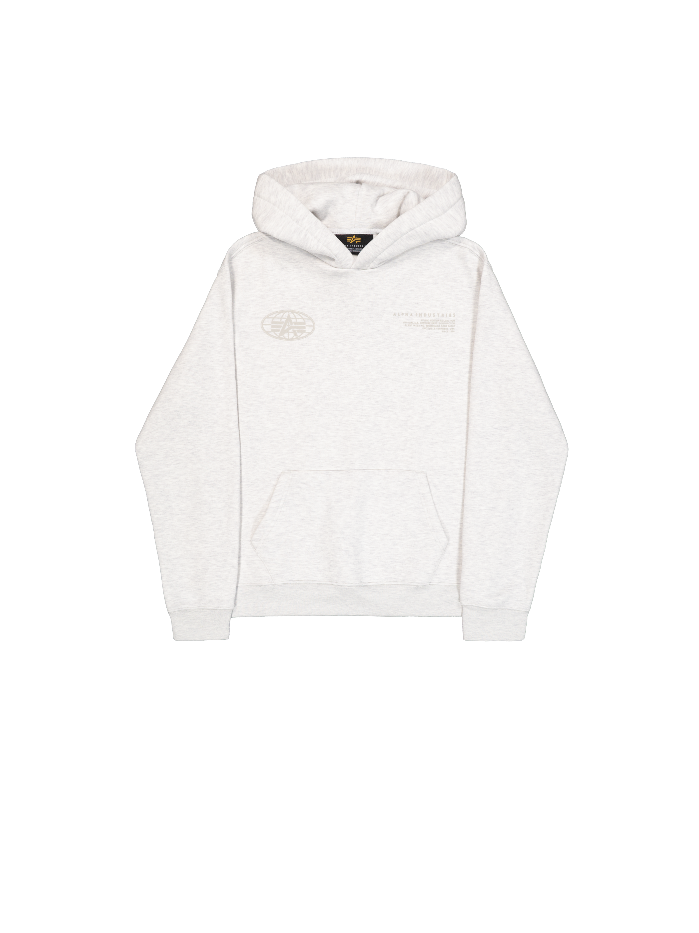 Slide into the World Logo Back Print Hoodie by Alpha Industries, where style meets comfort in an impeccable loose fit. Designed with precision and military-inspired craftsmanship, this hoodie is crafted from an 80% cotton and 20% polyester blend. The 380 g/m² brushed fleece fabric ensures warmth and softness, making it ideal for any mission, casual or otherwise.